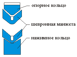 Уплотнения шевронные резино-тканевые для гидравлических устройств ГОСТ 22704-77